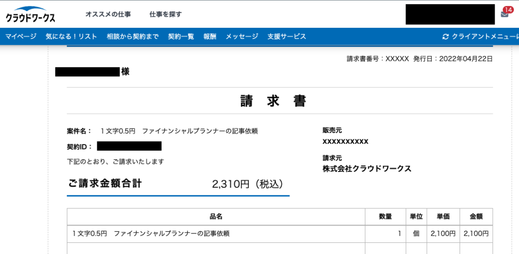 理由として、私がFPを取得した1週間後に受注できた案件の請求書を紹介します。